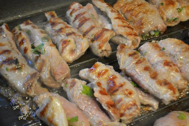 Обжарить на гриле с 2-х сторон на сильном огне до подрумянивания.