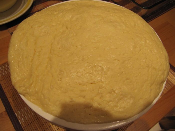 Положить тесто в глубокую чашу, смазанную тонким слоем растительного масла, накрыть пленкой и отправить в теплое место приблизительно на 1 час.