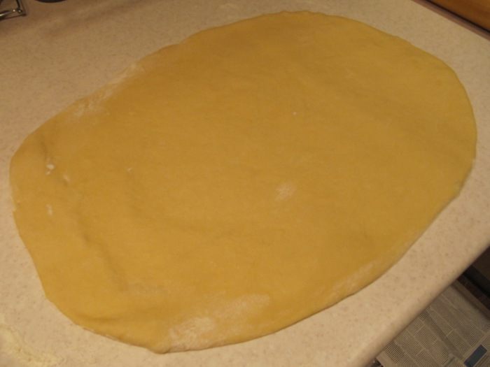 Муки может понадобиться чуть больше или меньше. Ориентируйтесь на тесто. Оно должно получиться гладким и эластичным, не липнуть к рукам.