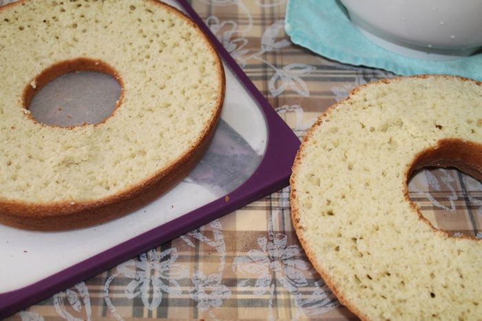 Пирог достаем из духовки и разрезаем пополам.