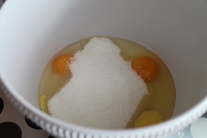 Яйца взбить с сахаром.