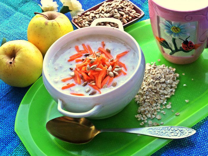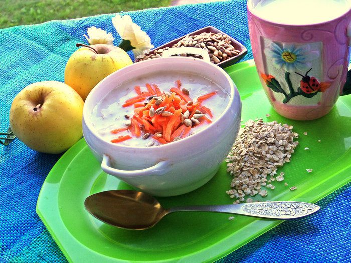У меня в семье хоть и не школьник, но студент, по утрам ест овсяную кашу, или вот варю для разнообразия более жидкий вариант - овсяную похлёбку