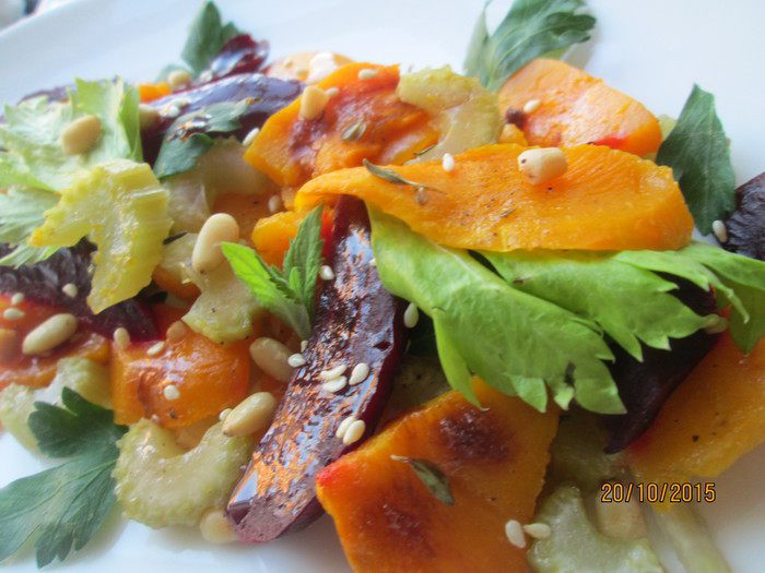 В нем все произростающие в наших широтах овощи, которые прекрасно сочетаются, и вместе с жареными орешками и бальзамиком создают приятный новый вкус таким привычным всем овощам!