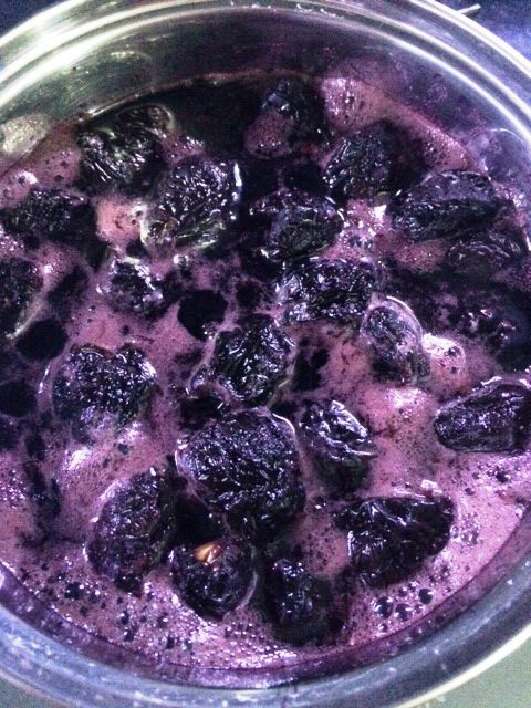 Ждем пока вино закипит, снимем образовавшуюся пенку и убавляем газ на минимум. Оставляем чернослив томится минут 15-20.