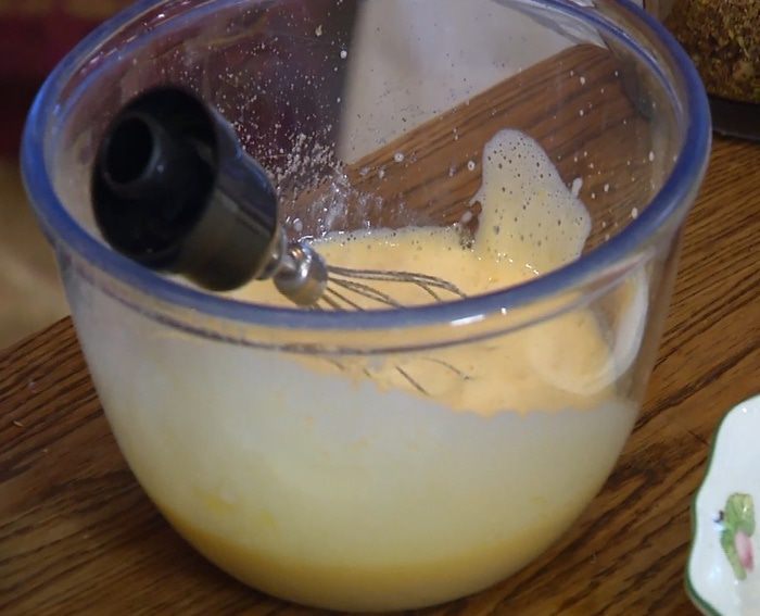 Яйца с сахаром взбить блендером с насадкой-венчиком в пышную массу.