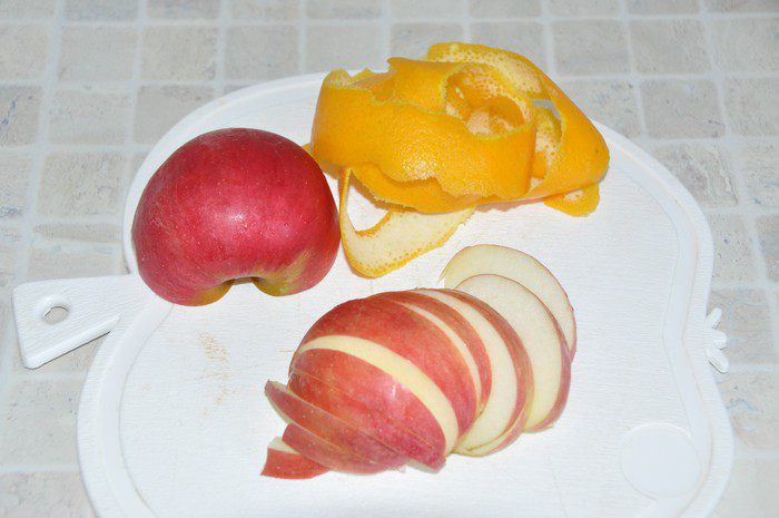 Яблоко помыть и нарезать тонкими дольками.