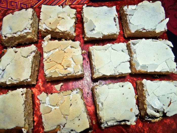 Выпекаем пока не схватится безе. Выключаем духовку. Остужаем пирог.