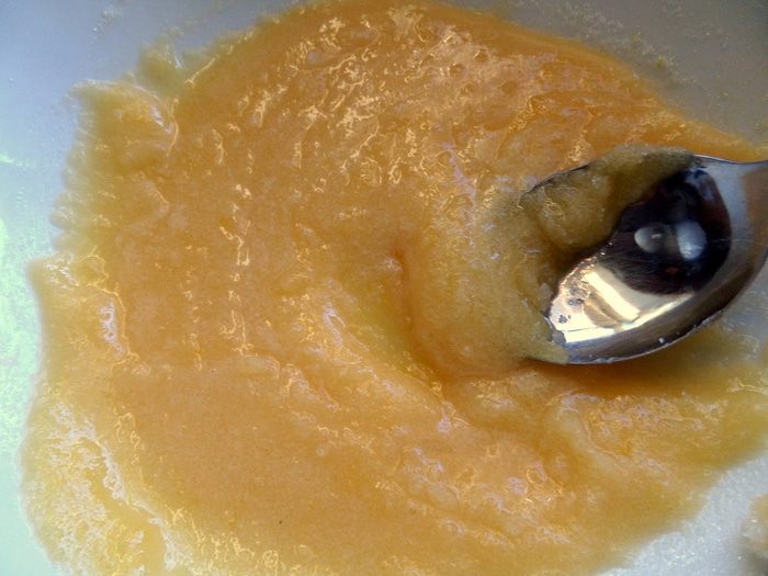 Затем отправляем выпаренную и размягчённую цедру в "тесто" (без воды!) вместе с соком лимона 3-4 ст.л.