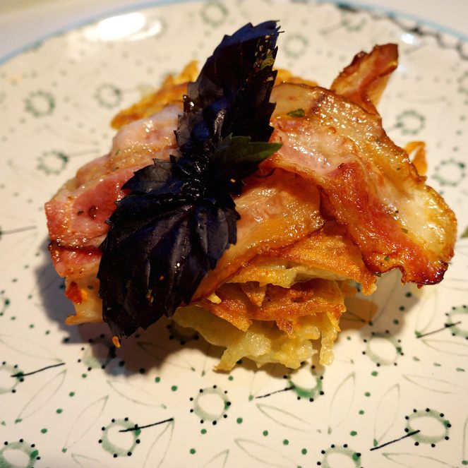 Мне нравится выкладывать драники стопкой и украшать их сверху беконом и зеленью. В этот раз я использовала свежий базилик.