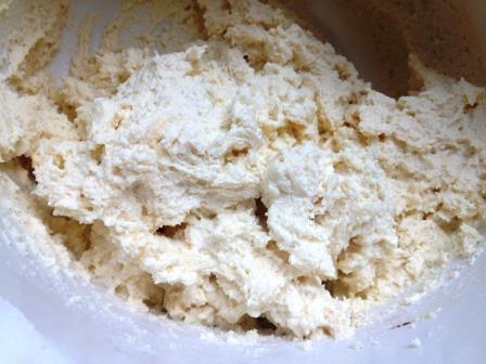 Смешать творог, яйцо, 1 белок, овсяную муку и соль.