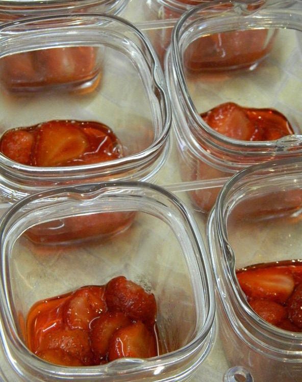 Если не сезон клубники, можно взять замороженную ягоду. Выход: 6 стаканчиков по 150г.