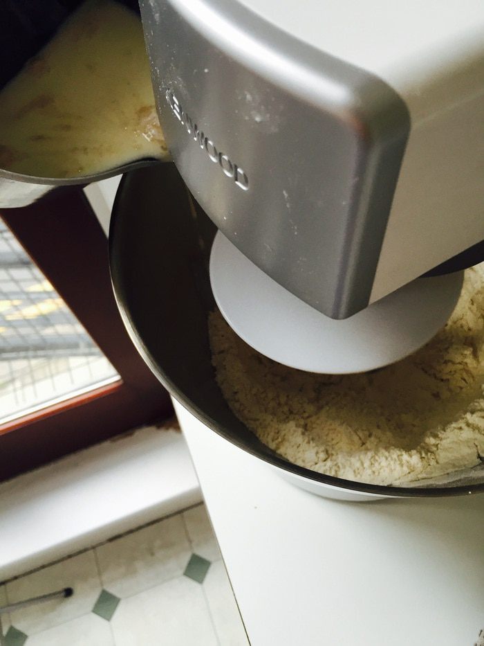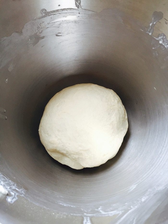 Вымесить мягкое, эластичное тесто, собрать в шар, накрыть, оставить в тепле на 1 час.