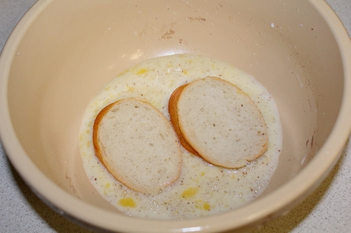 Опустите кусочки батона в смесь, оставьте на минуту, переверните, снова подождите немного. В большой сковородке растопите немного масла на среднем огне, жарьте гренки с двух сторон до золотистого цвета.
