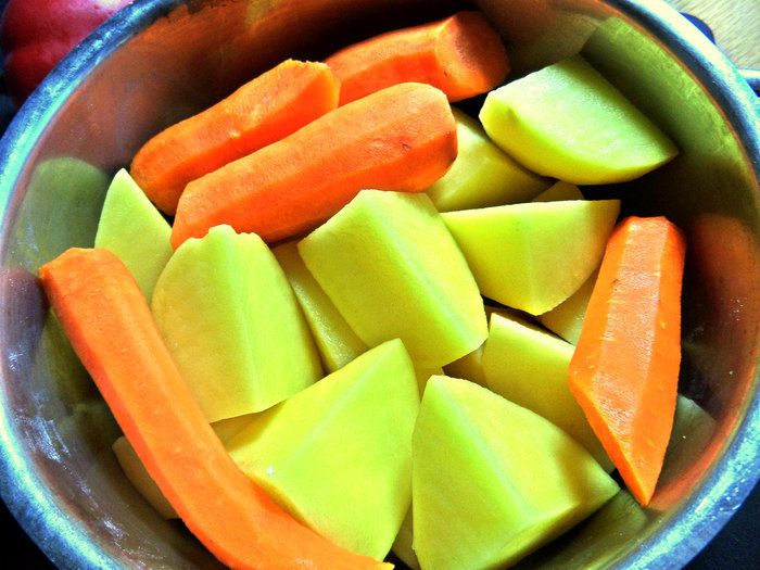 Вынуть лук, чеснок на блюдце, огонь не выключать!