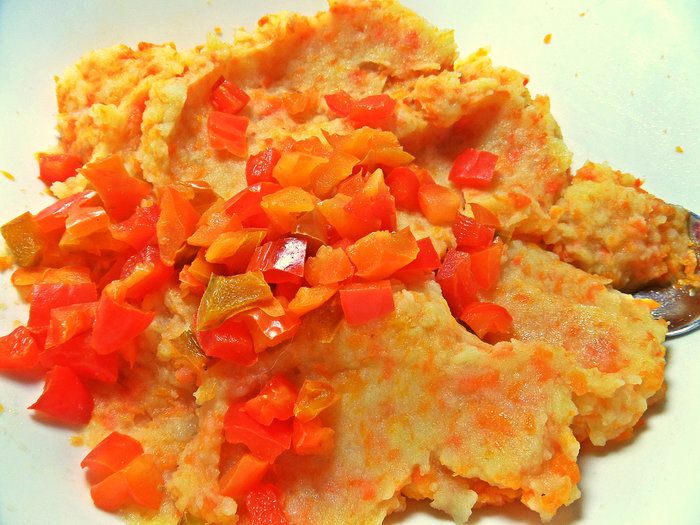 Смазываем верх сметаной или майонезом, посыпаем ложкой сухарей.