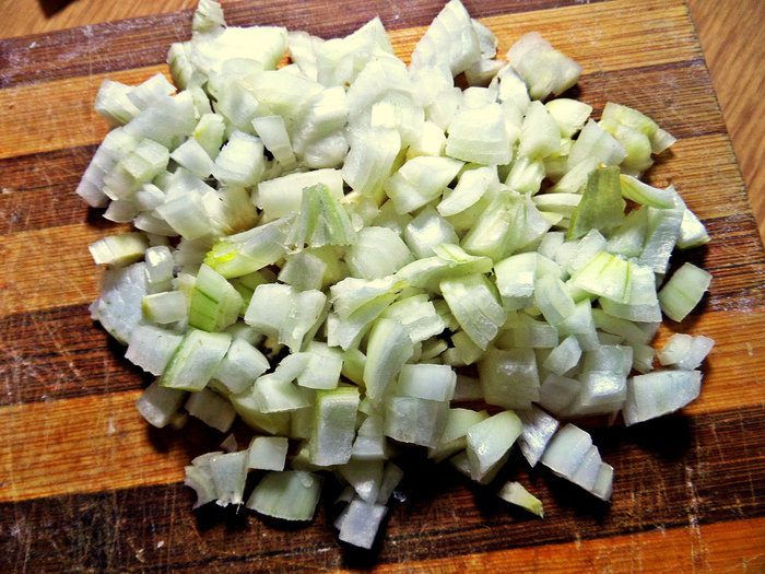 Жарим с двух сторон минут 5, вынимаем и нарежем помельче.