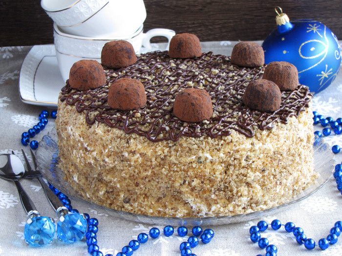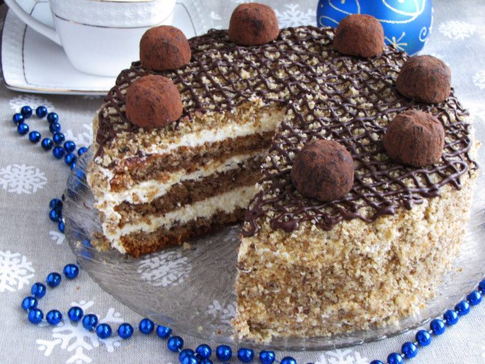 Украсить по желанию трюфельными конфетами. Торт готов!