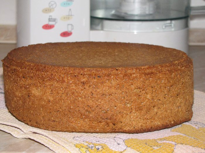Готовый бисквит выложить на полотенце, дать ему отдохнуть часов 8, тогда бисквит ровно и красиво разрежется.