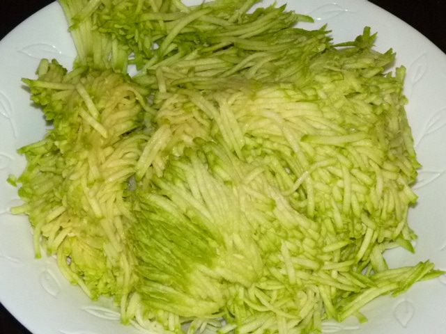 Кабачки натереть, посолить. Отставить на время, пусть стечет сок.