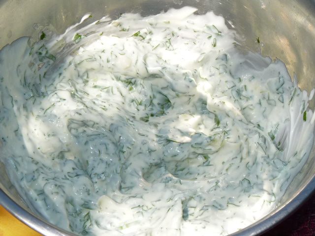 Тем временем измельчить любимую зелень и чеснок, немного посолить.