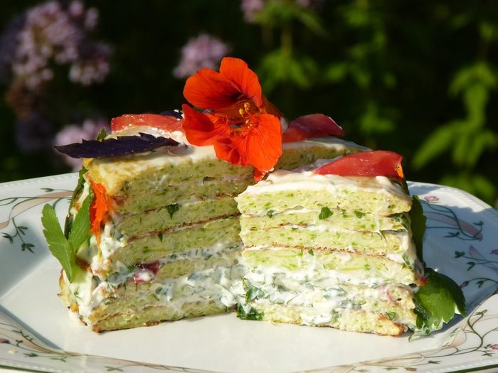 Легкая, простая в приготовлении летняя закуска. Готовлю из молоденьких кабачков, еще без семян. Когда много едоков, то расчитываю 1 кабачок на человека, остальные ингредиенты высчитываю соответственно. Процесс приготовления прост, приобщаю деток, особенно им нравится процесс украшения. Этот тортик украсила моя крестница Машуля