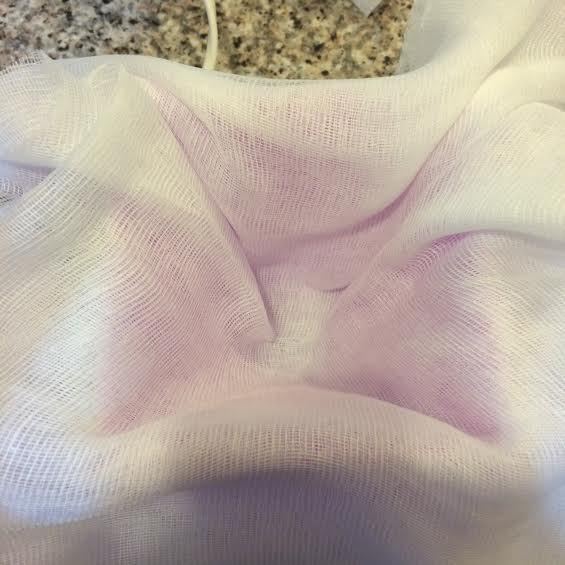 Посочницу застелить марлей,сложенной в 3 слоя. Края марли должны свисать.