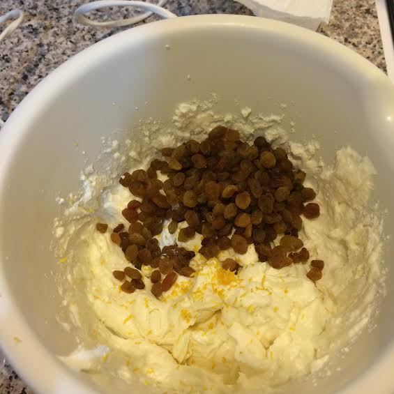 Добавить изюм и цедру лимона и хорошо перемешать ложкой.