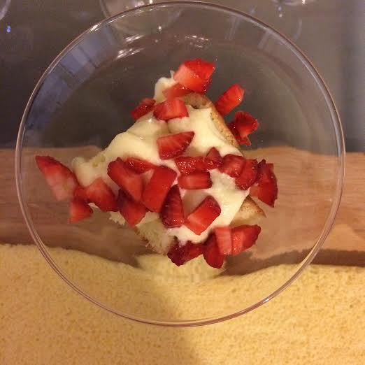 Потом опять бисквит, кофе, крем и клубника.