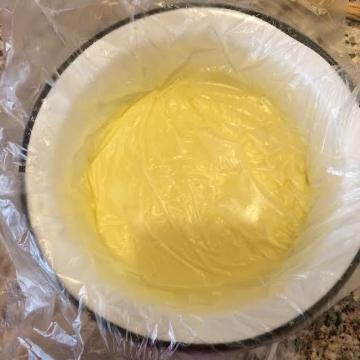 Варить крем на медленном огне, постоянно помешивая до загустения. Готовый крем накрываем пленкой и даем остыть.