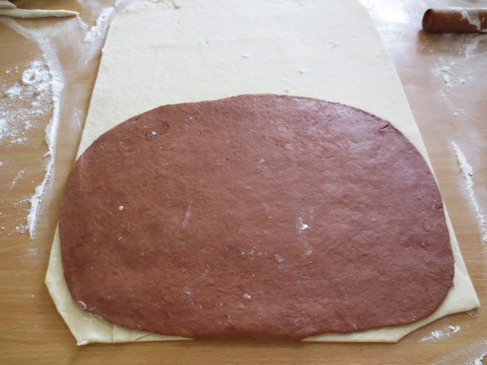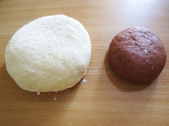 Замесив два вида теста, накрываем его пленкой и оставляем в теплом месте на 1,5 часа.