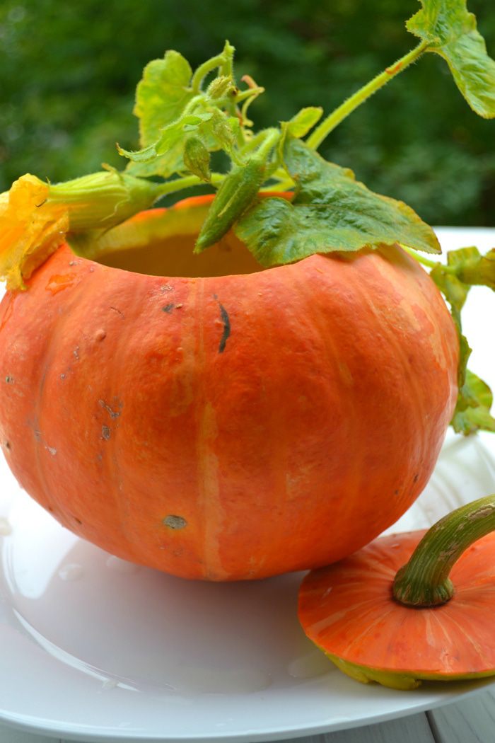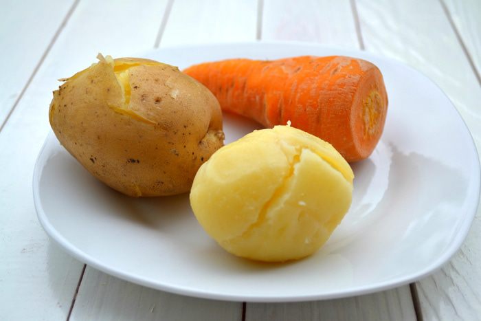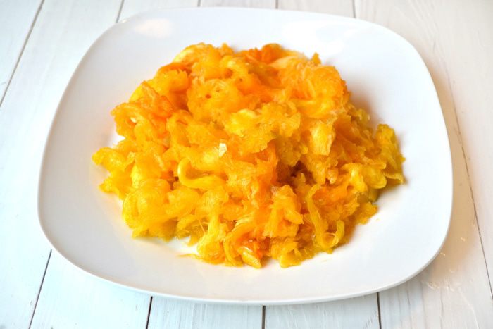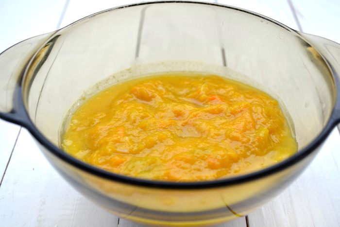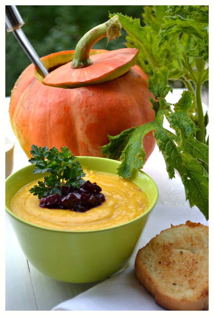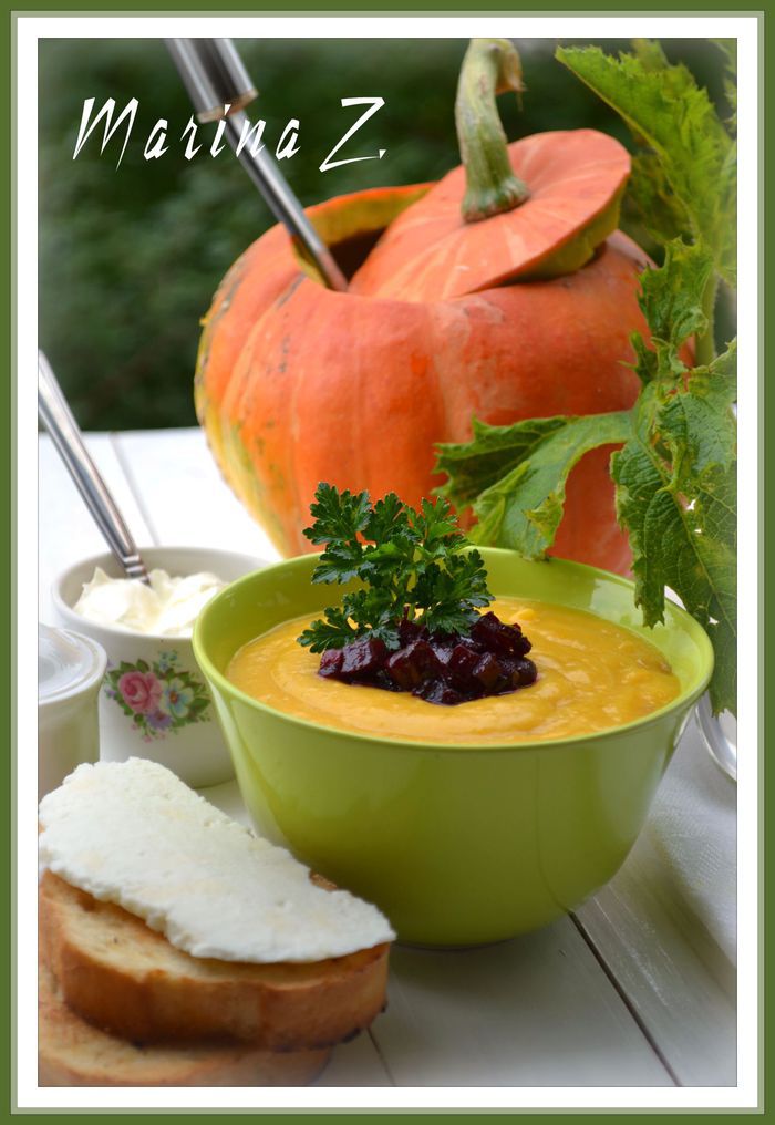 Картофель, морковь почистить, измельчить ножом, соединить с мякотью тыквы, посолить, можно добавить специи по вкусу, пассерованный лук. Взбить блендером до совершенно однородной консистенции (похожей на крем). При необходимости, если будет слишком густо (а у меня было очень густо), подлить бульон, в котором варились овощи.