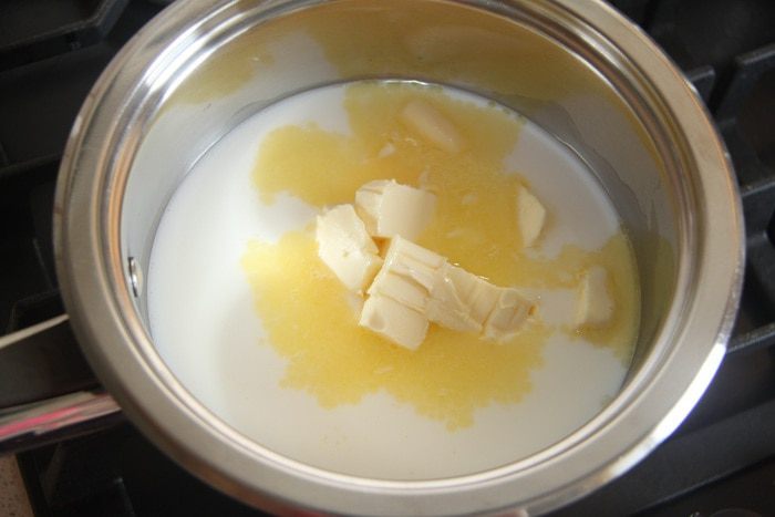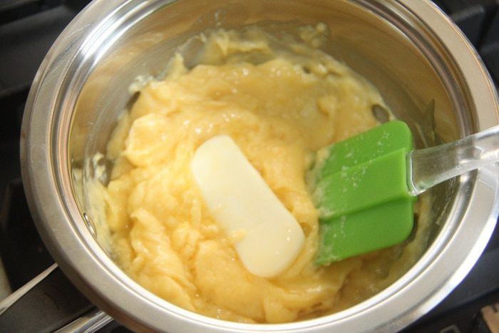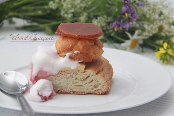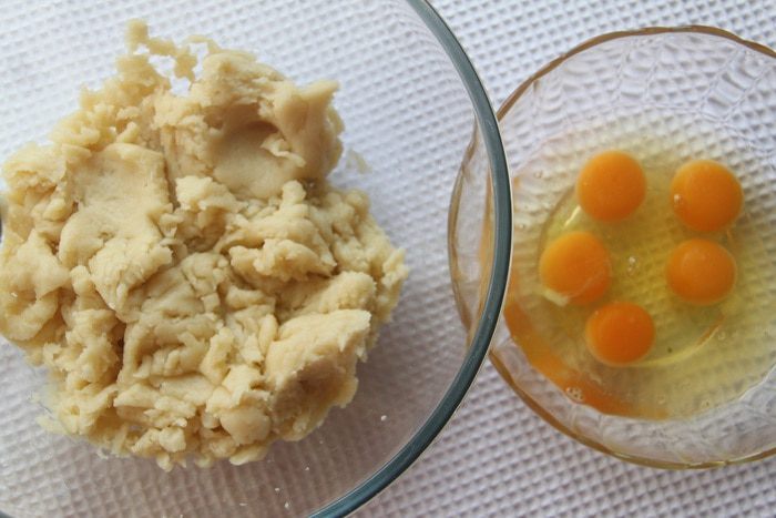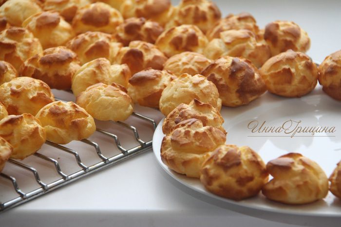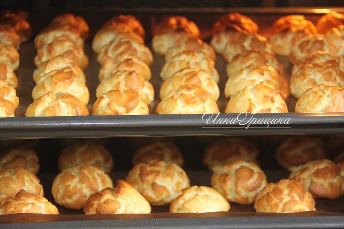 Для заварного теста понадобится: 245 г муки в/с, 180 г молока, 180 г воды, 120 г сливочного масла, 2 ч.л. сахара, 0,5 ч.л. соли, 5 яиц.