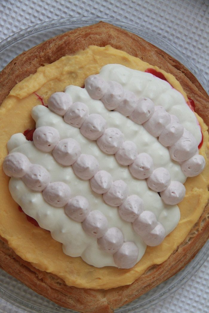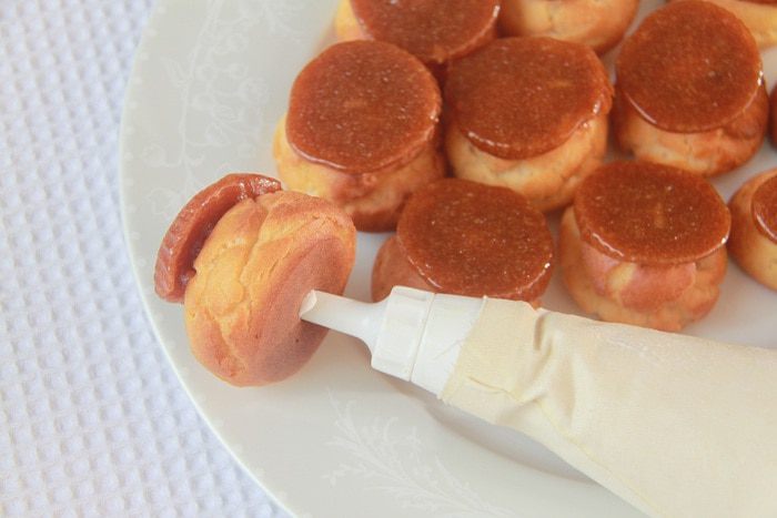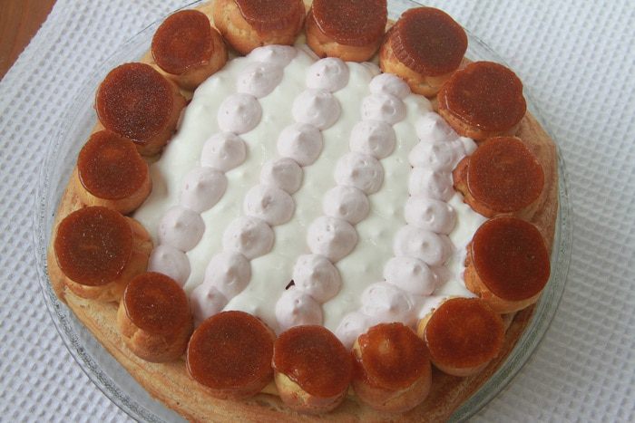 Из данного количества теста получается примерно 85 профитролей размером чуть больше грецкого ореха. Для торта понадобится 14-18 шт. Из остальных можно приготовить другие десерты, или сократите количество ингредиентов для профитролей.