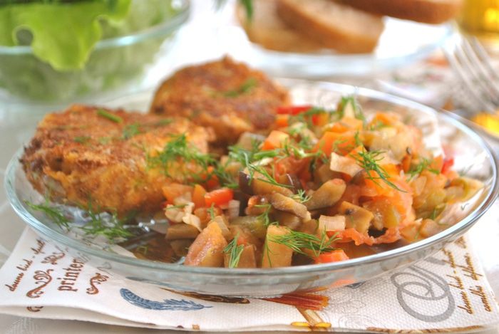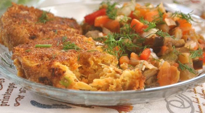 Отличный постный обед. Запеченые овощи и котлетки из нута.