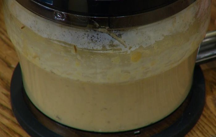 Добавить в блендер обжаренный лук и чеснок, еще немного посолить и взбить все в гладкую, однородную массу.
