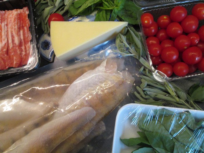 Постное филе судака прекрасно сочетается с беконом и ароматным шалфеем, а запеченные помидоры так сочно-кисловато дополняют вкус! И, конечо же, за трапезой — бокал белого столового итальянского вина.