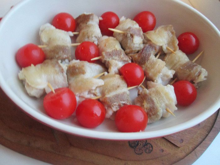 Укладываем инвольтини вместе с помидорами в форму для запекания и отправляем ее в духовку, нагретую до 180°С, на 10 минут.