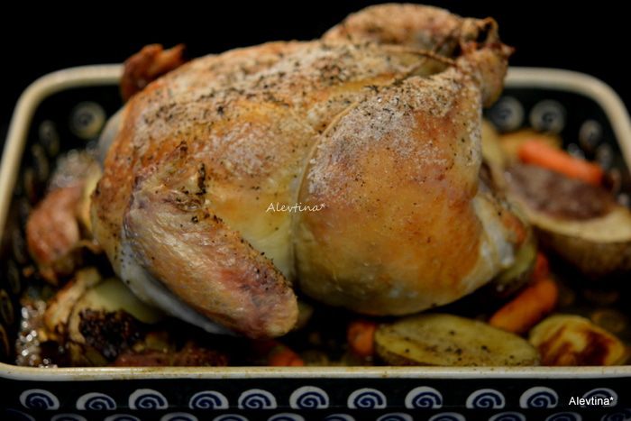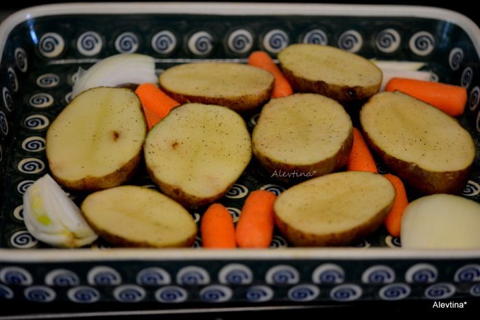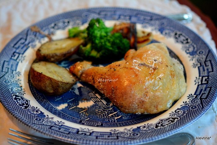 Духовку разогреть до 200°C. Я намеренно не ставила как по рецепту до 230°C, чтоб был равномерный "загар" на кожице.