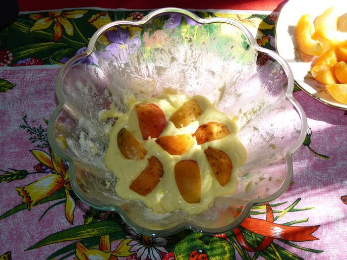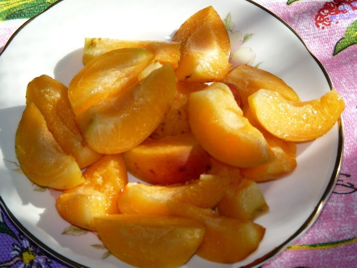 Абрикосы 3 шт нарезать дольками, остальные для украшения.