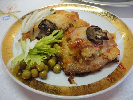 Всех поздравляю с Новым годом. Зима у нас снежная и холодная, поэтому даже отбивные я накрыла "шубкой".