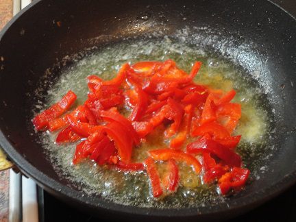 Болгарский перец потушить в смеси растительного масла (1 ст. л.) и сливочного.