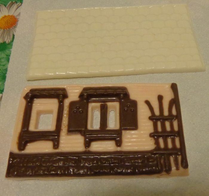 Но, здесь все и просто, и непросто. Просто растопить шоколад на водяной бане и налить его в форму. Непросто — залить так, чтобы не образовались пузырьки воздуха, и он как следует застыл в форме. Так что лучше не проявлять нетерпение, а подольше подержать форму в холодильнике, иначе вся работа пойдет насмарку! У меня в первый раз так и получилось.