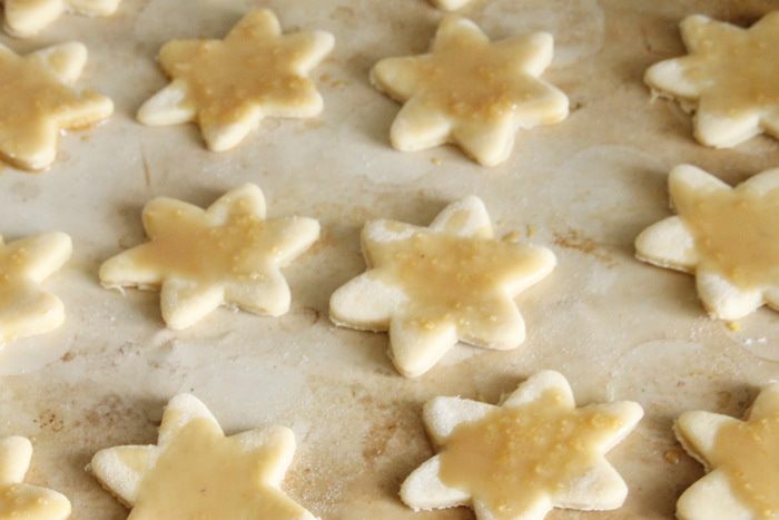 Тесто раскатать (при необходимости подсыпая муку) и вырезать из него небольшие печенья.