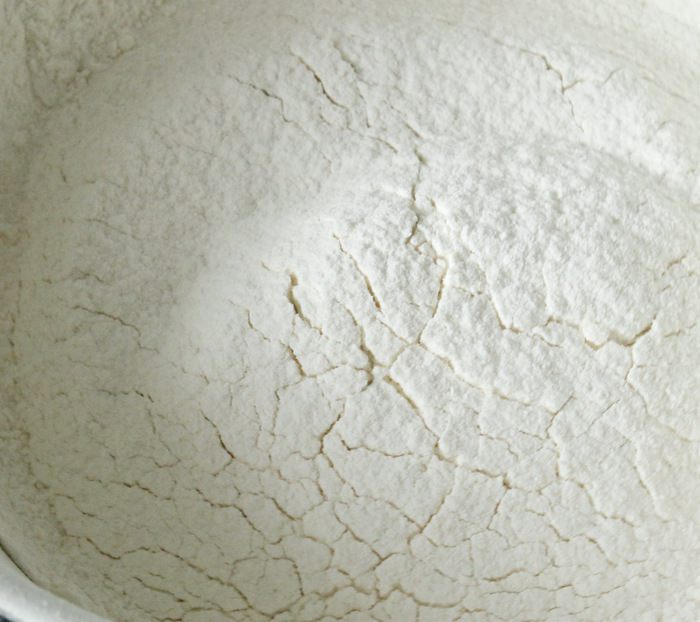 Добавить рисовую и пшеничную муку, соль.