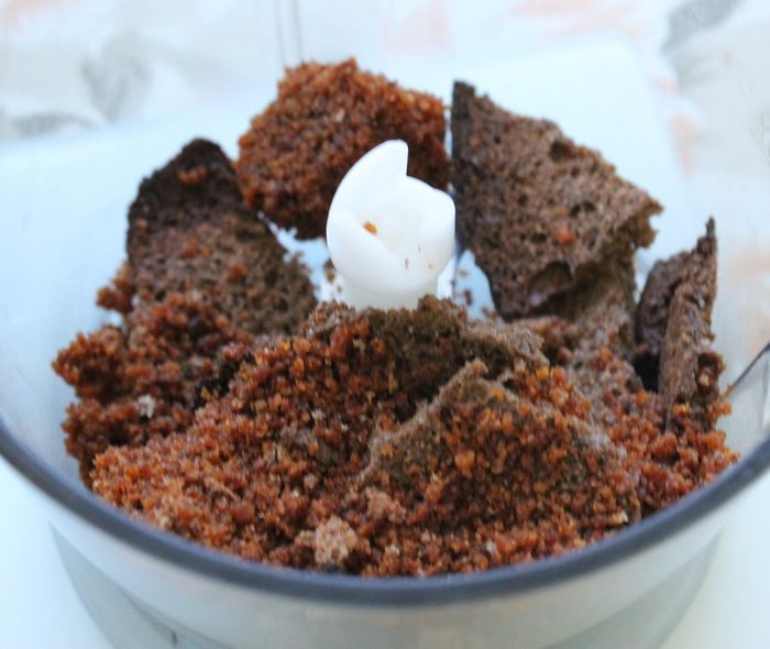 Измельчить бисквит до состояния крошки.