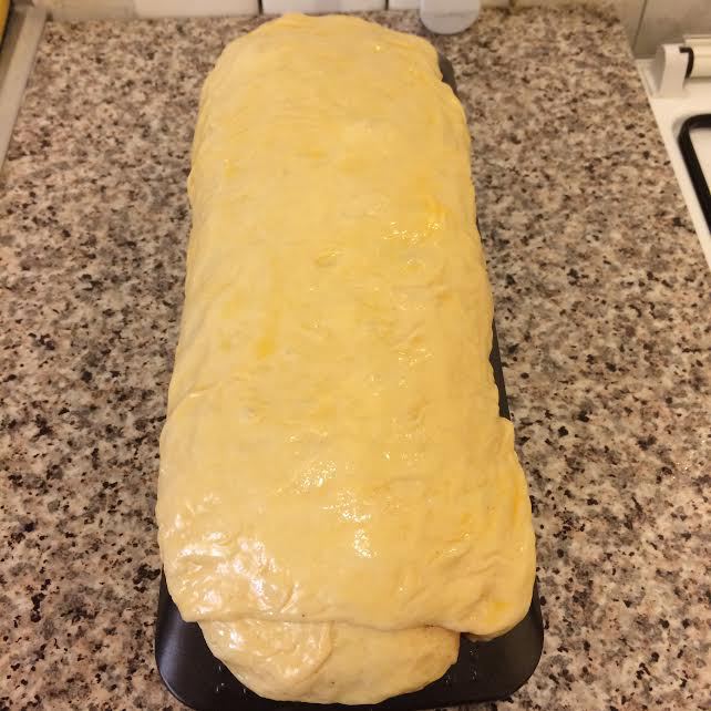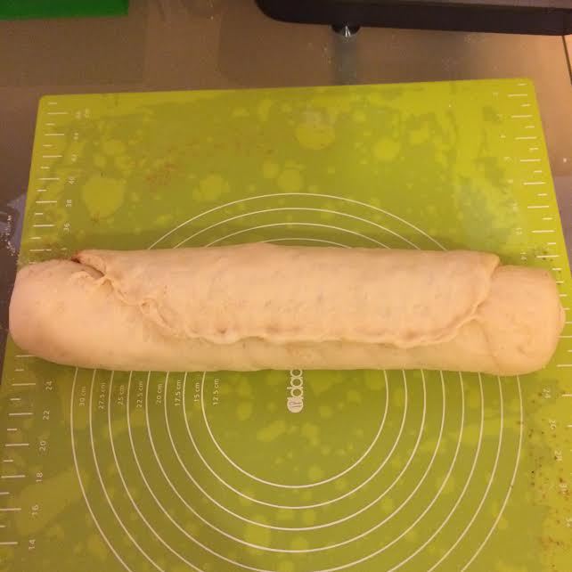 Тесто свернуть в рулет, защипав края.