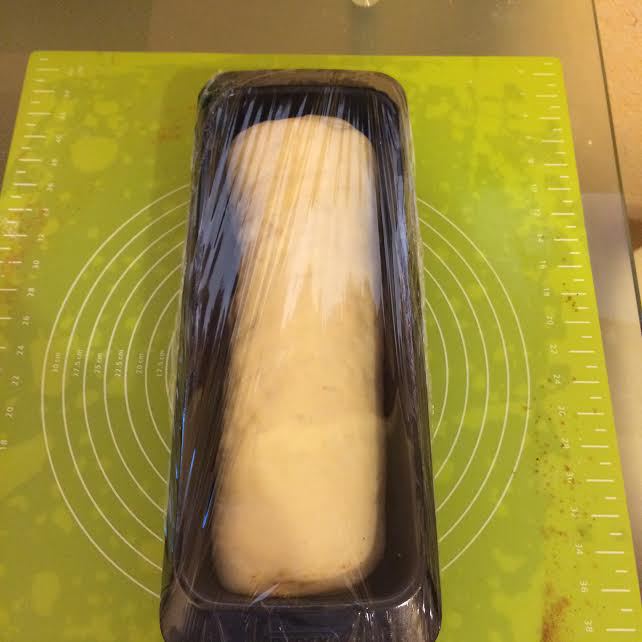 Форму (диаметр 30 см) смазать маслом. Выложить тесто в форму. Форму затянуть пленкой и накрыть полотенцем. Отправить в теплое место на 2 часа.