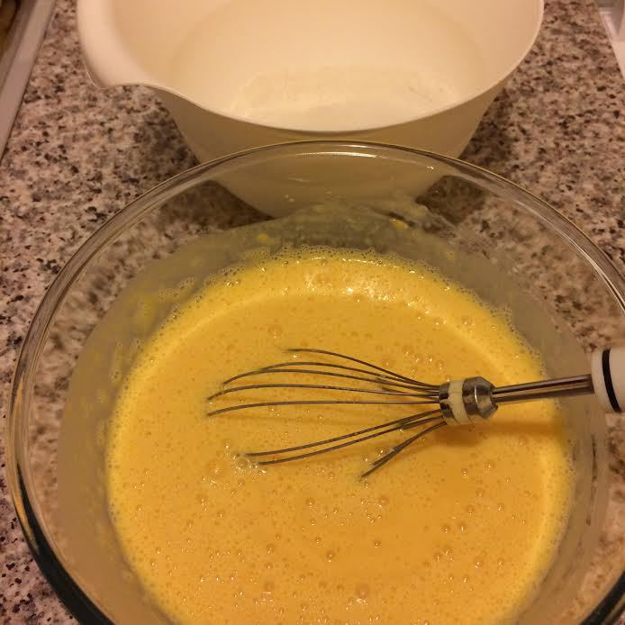 В миске хорошо взбить венчиком молоко, яйцо, пюре.