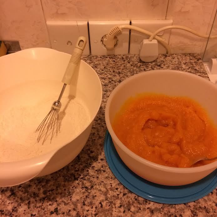 В миске смешать сухие ингредиенты. Приготовить тыквенное пюре можно по этому рецепту http://www.edimdoma.ru/retsepty/84820-pumpkin-cheesecake-chizkeyk