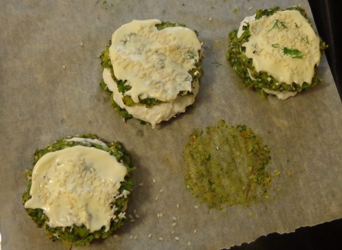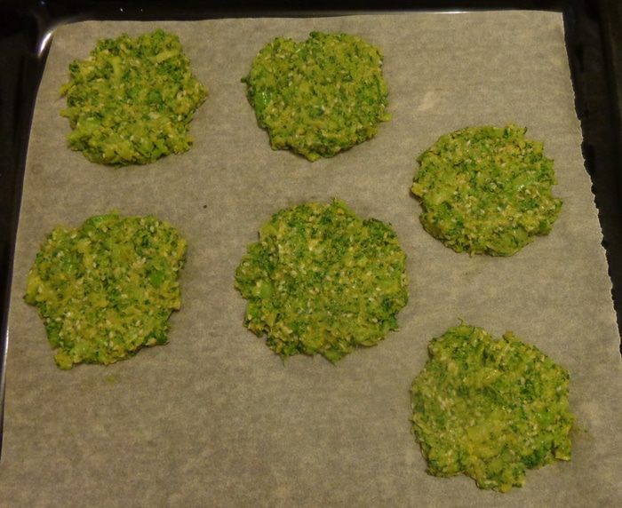 Ложкой выложить капустную смесь на пергамент и печь при 180°C до полуготовности минут 10.